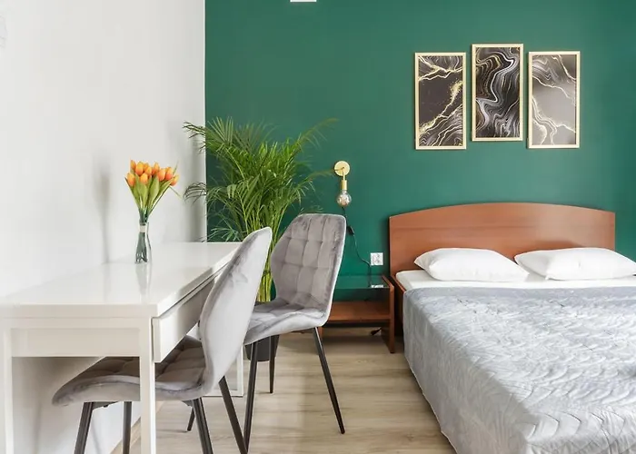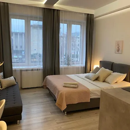 Exclusive Apartments Smolna appartement ligt op slechts 1 km van Paleis van Cultuur en Wetenschap en biedt kamers met straatzichten. De accommodatie is ook voorzien van een kitchenette met een magnetron, een waterkoker en een koelkast.