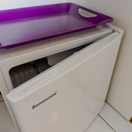 This apartment comes with coffee/tea making equipment and a kitchenette featuring an electric kettle, a refrigerator, and kitchenware.